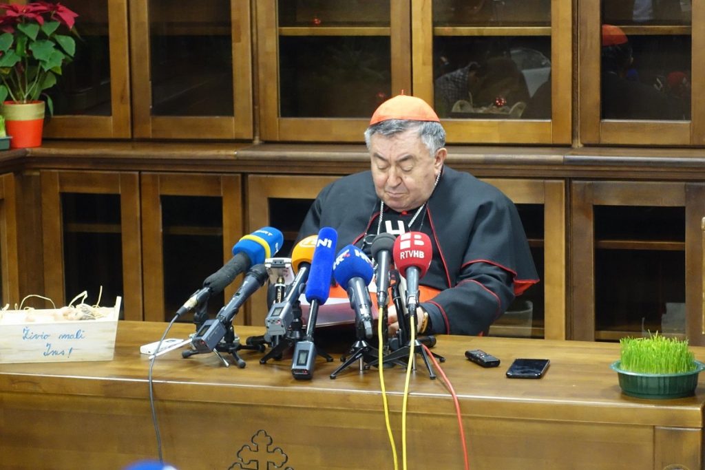 Nakon što je izrekao svoju Božićnu čestitku 23. prosinca u biblioteci Nadbiskupske rezidencije u Sarajevu, vrhbosanski nadbiskup kardinal Vinko Puljić odgovarao je na pitanja novinara.