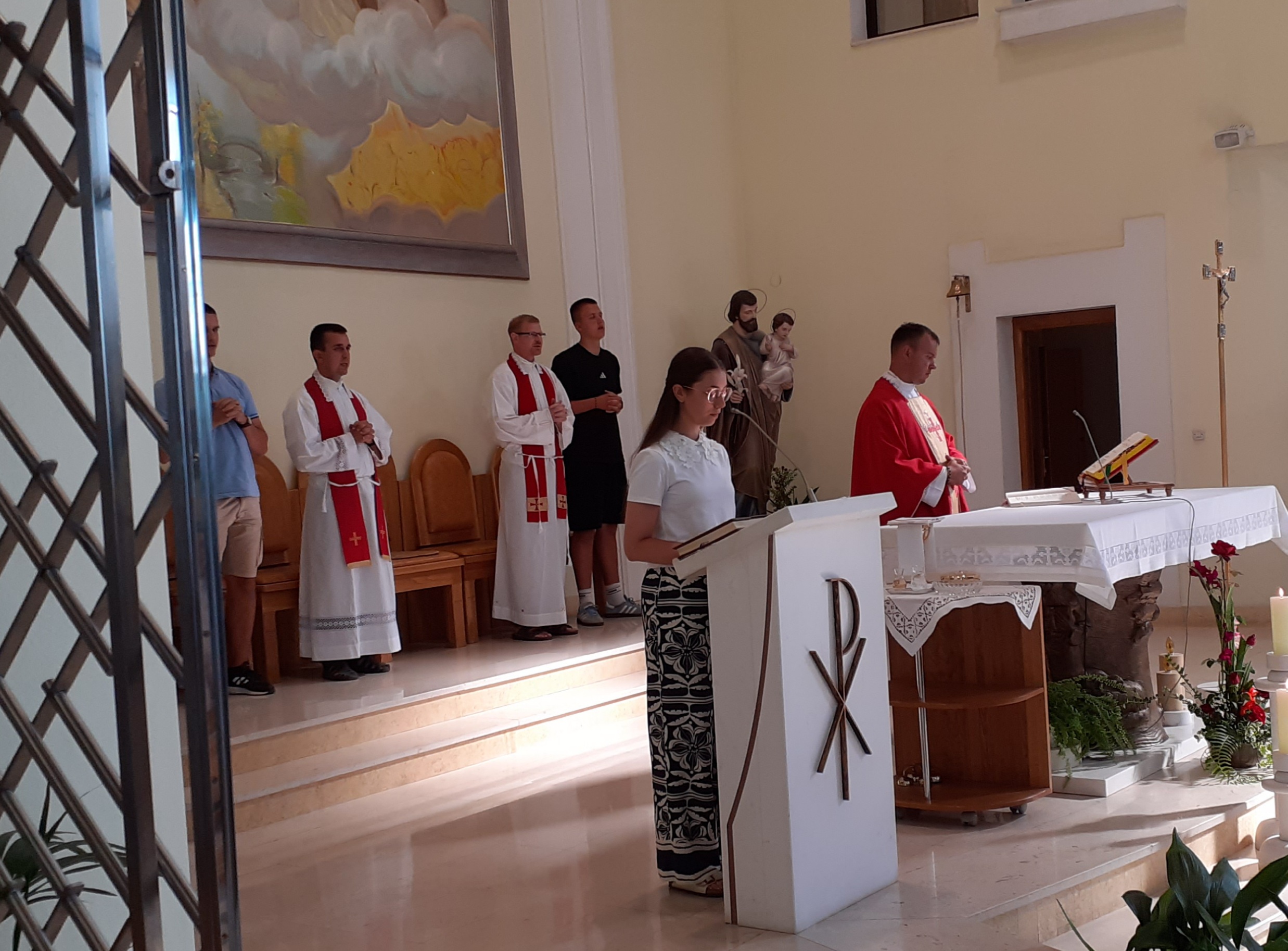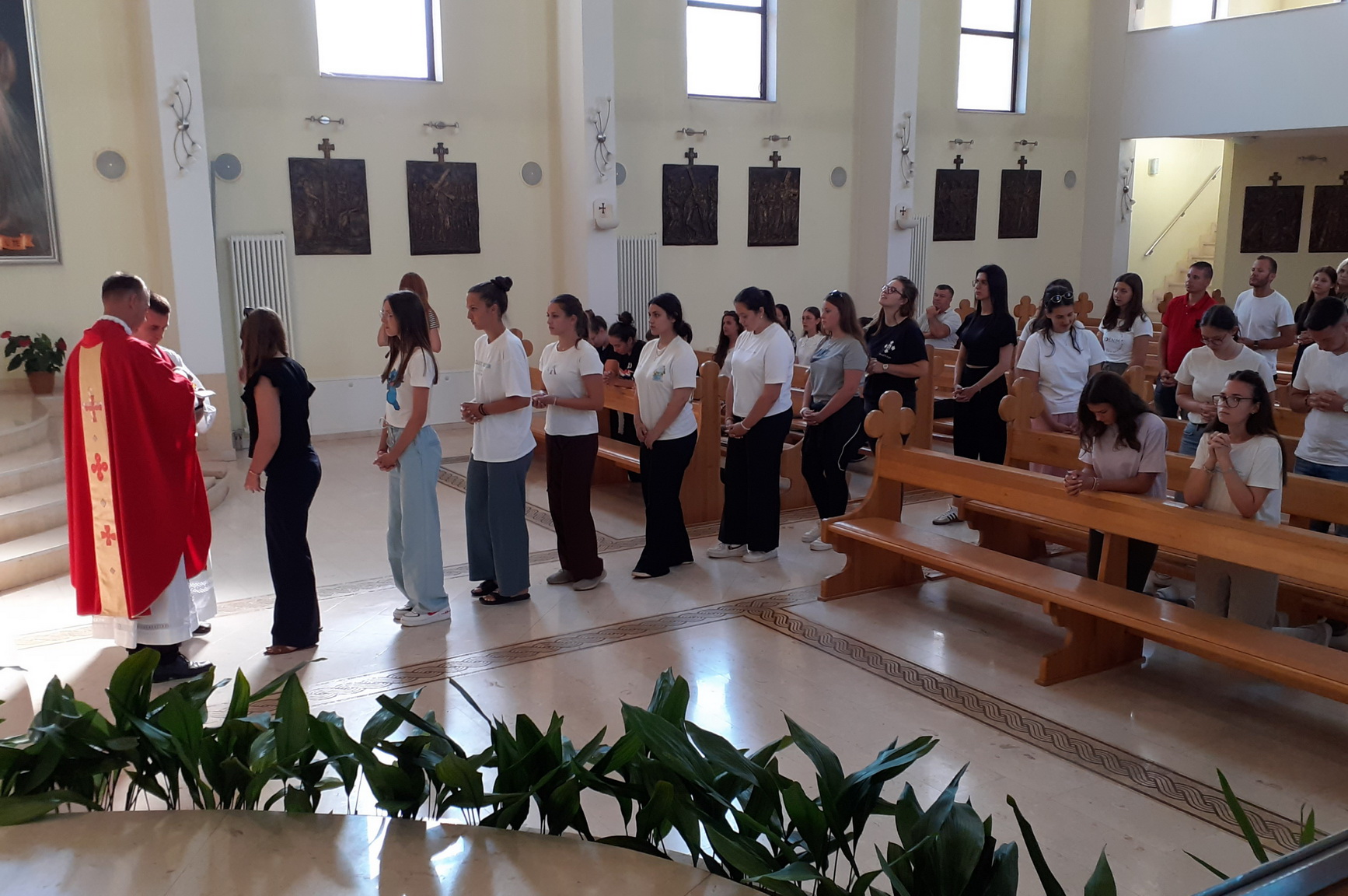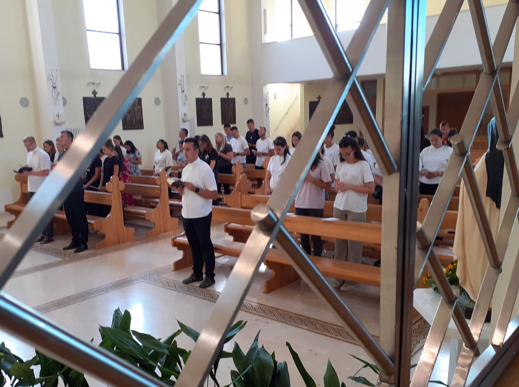 Osječku skupinu predvodili su vlč. Domagoj Brkić, župni vikar župe sv. Petra i Pavla u Osijeku, vlč. Stjepan Matezović, duhovnik Bogoslovnog sjemeništa u Đakovu, i vlč. Josip Brnjić, župni vikar župe sv. Ćirila i Metoda u Osijeku. Mladi su u samostanskoj crkvi zajedno sa sestrama karmelićankama sudjelovali u misnom slavlju i Večernjoj molitvi časoslova.