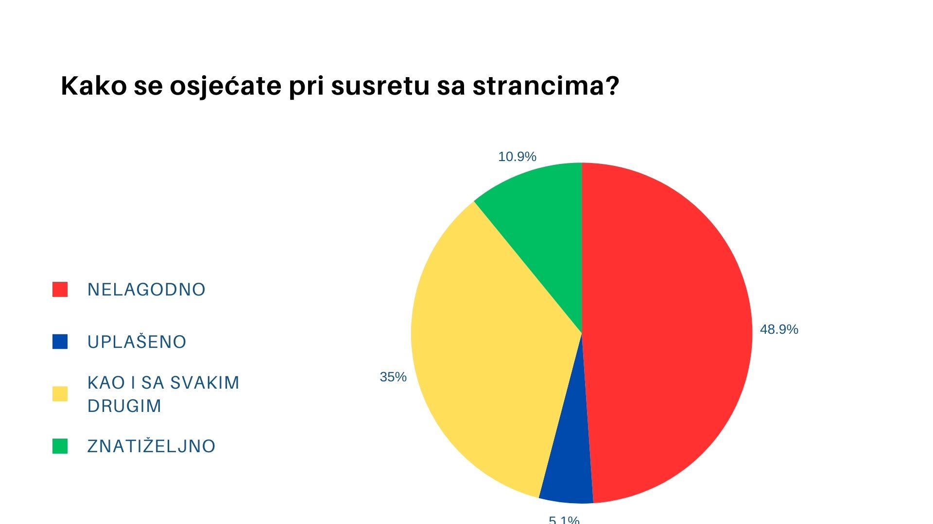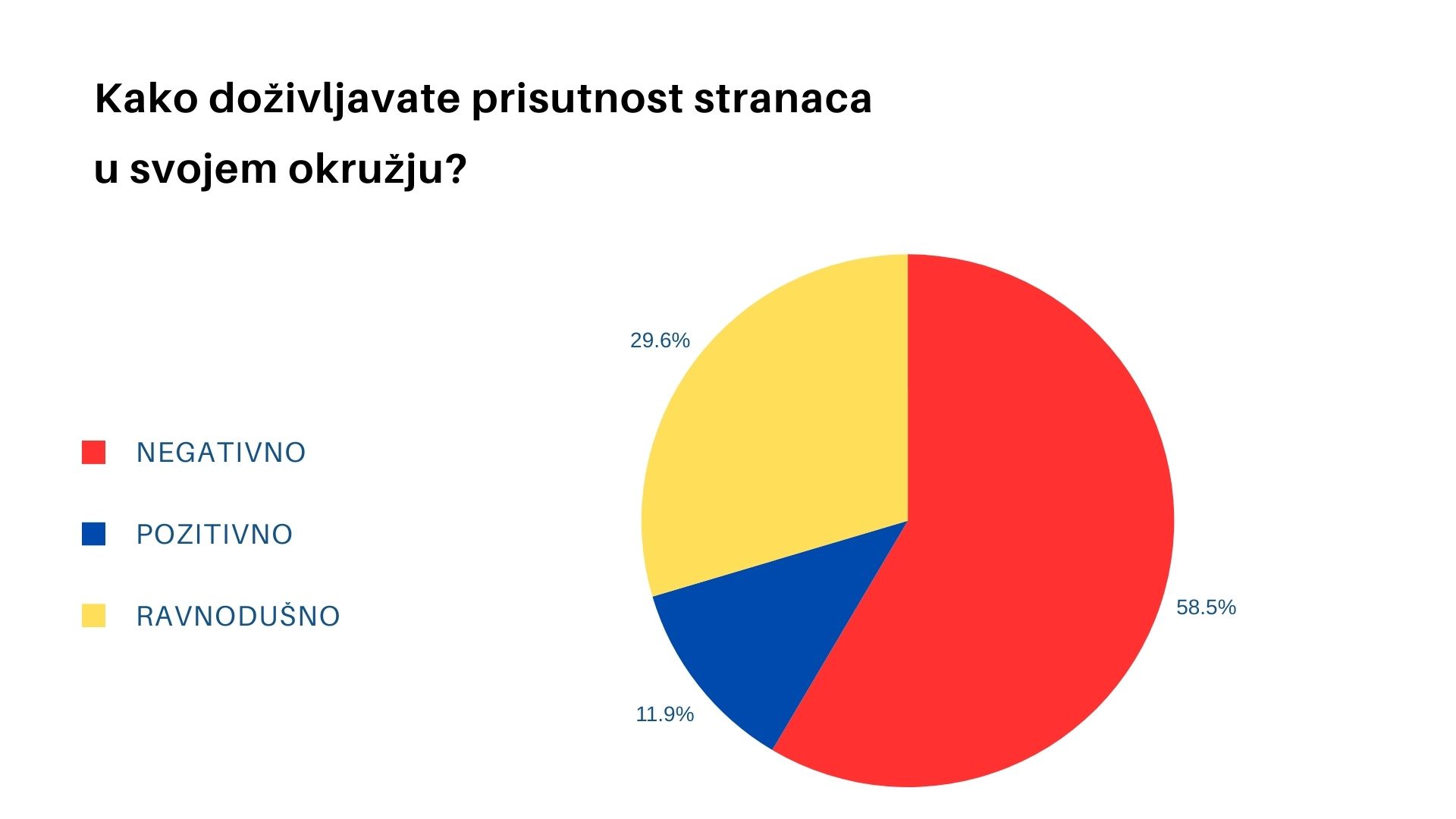 Međutim, prisutnost stranaca u našem okružju je neminovna i već ostvarena. Većina na nju gleda negativno (58.5 %). Ravnodušnih je 29.6 %, a da je pozitivna smatra 11.9 % ispitanika.