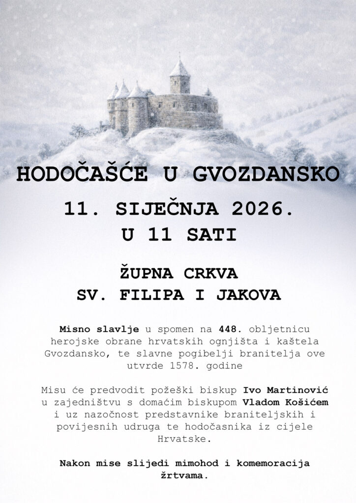Misno slavlje u spomen na 448. obljetnicu herojske obrane hrvatskih ognjišta i kaštela Gvozdansko, te slavne pogibelji branitelja te utvrde 1578. godine, bit će slavljeno u nedjelju 11. siječnja u 11 sati u župnoj crkvi sv. Filipa i Jakova u Gvozdanskom. Misu će predvodit požeški biskup Ivo Martinović u zajedništvu s domaćim biskupom Vladom Košićem i uz nazočnost predstavnika braniteljskih i povijesnih udruga te hodočasnika iz cijele Hrvatske. Nakon mise slijedi mimohod i komemoracija žrtvama.