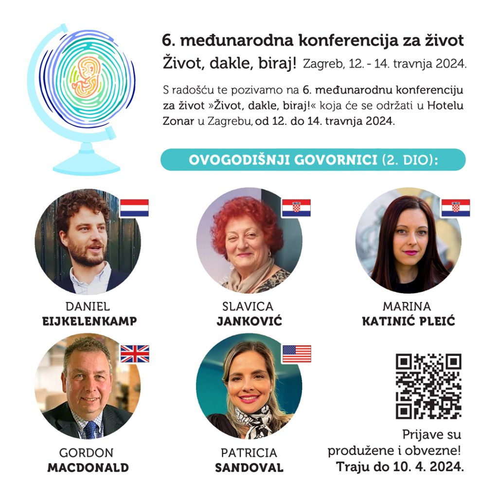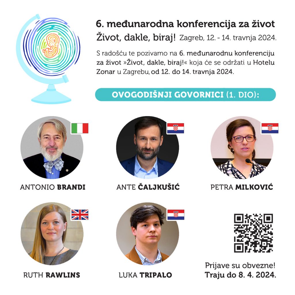 Udruga Hrvatska za Život organizira 6. međunarodnu konferenciju za život pod geslom Život, dakle, biraj!, od 12. do 14. travnja 2024., u Hotelu Zonar u Zagrebu.