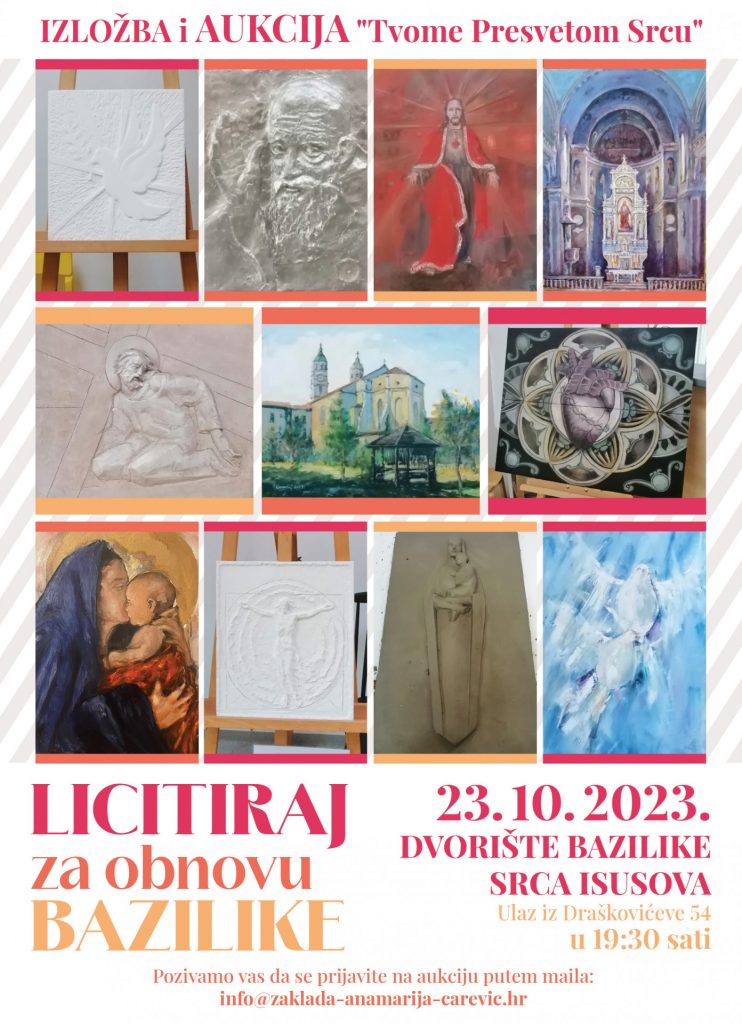 Izložba i aukcija umjetnina za obnovu bazilike Presvetoga Srca Isusova u Zagrebu bit će organizirana u ponedjeljak 23. listopada 2023. nakon mise, u 19:30.
