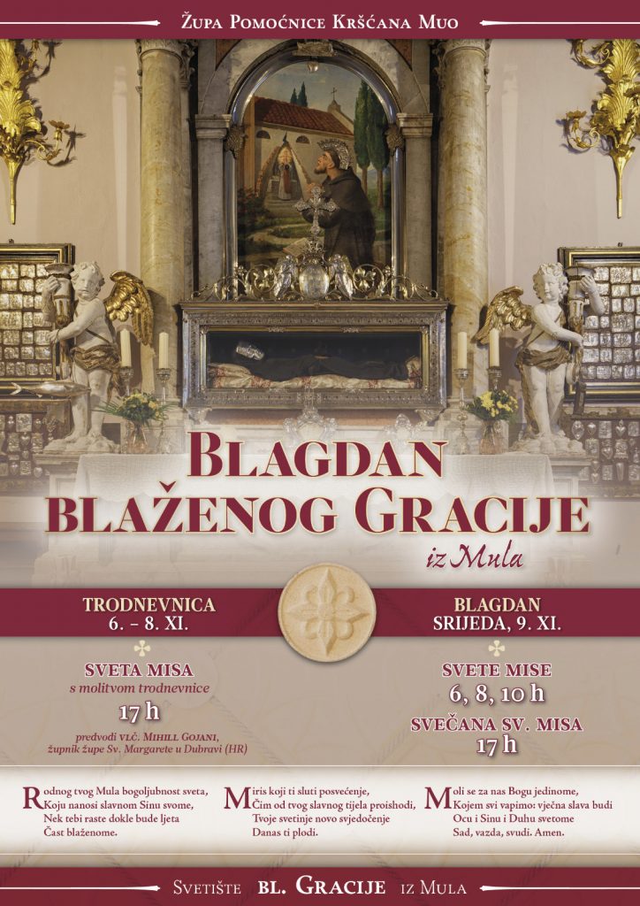 Muo, (IKA) – Blagdan bl. Gracije iz Mula proslavit će se u župi Muo misama i duhovnom pripravom.