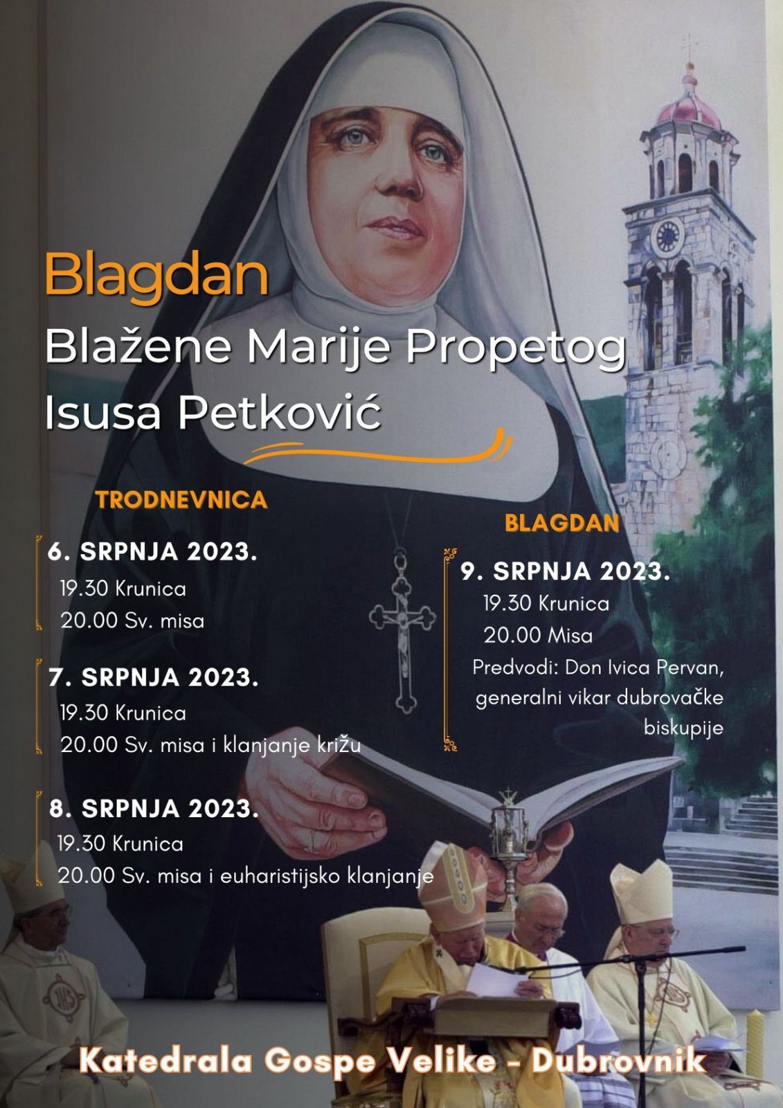 Ususret blagdanu u katedrali će se upriličiti trodnevnica koja počinje četvrtak 6. srpnja. Svake večeri u 19.30 molit će se krunica, a u 20 sati slaviti misa.