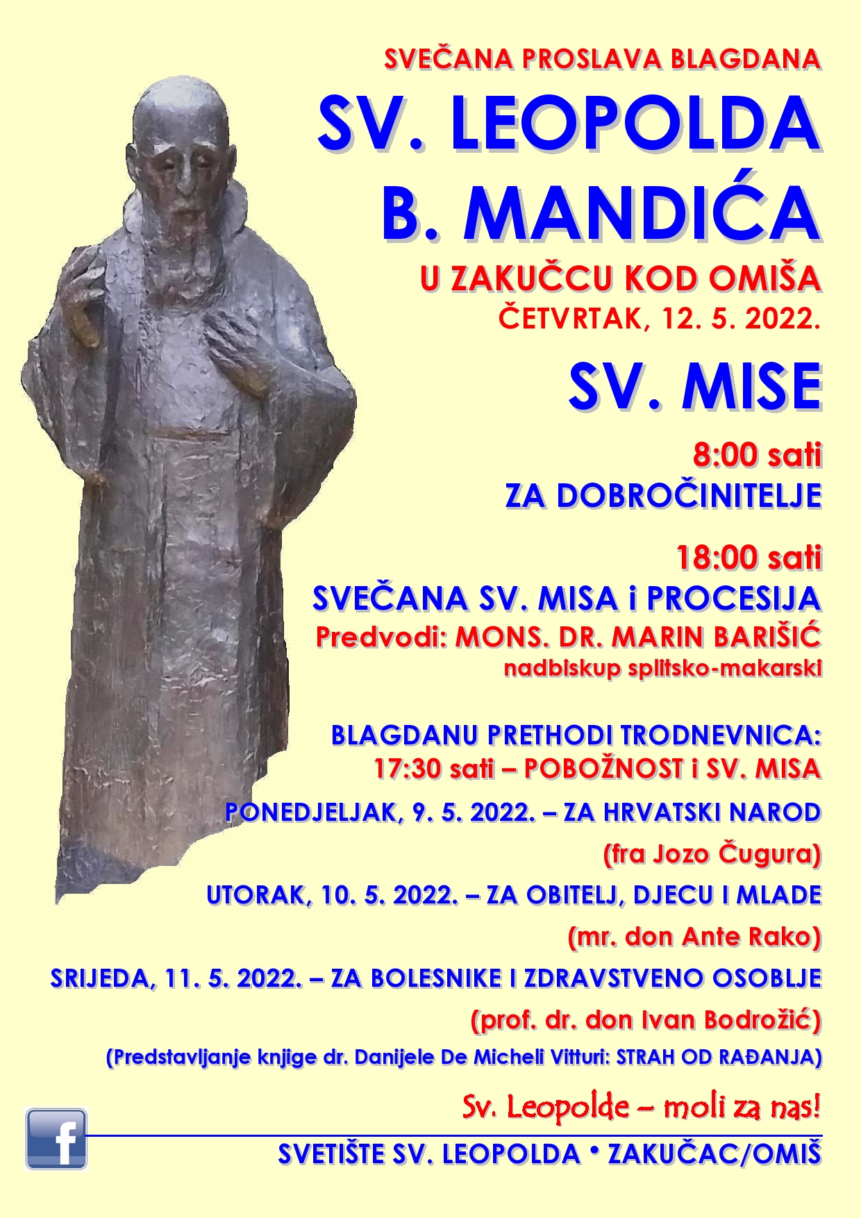Blagdan sv. Leopolda Mandića u Zakučcu Ispis Zakučac (IKA) 09.05.2022. / 17:30 - 12.05.2022. / 19:00 Podijeli članak