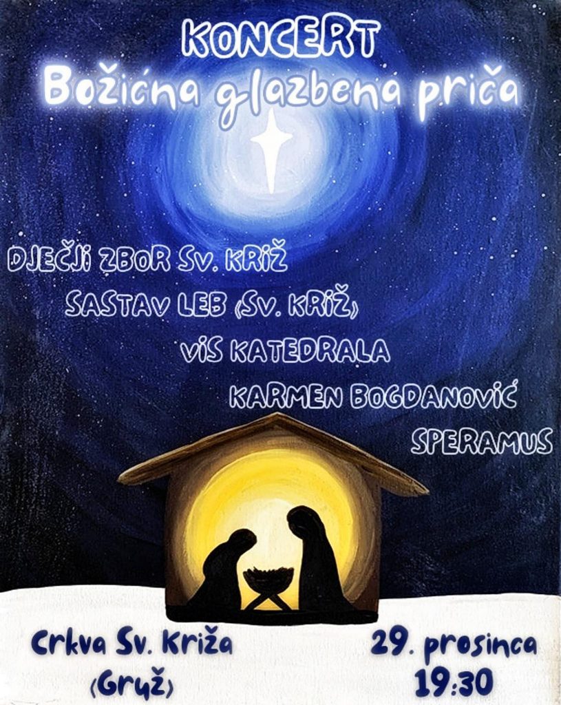 Božićni koncert „Božićna glazbena priča“ održat će se u gruškoj crkvi Svetog Križa u Dubrovniku u petak, 29. prosinca 2023. s početkom u 19:30.