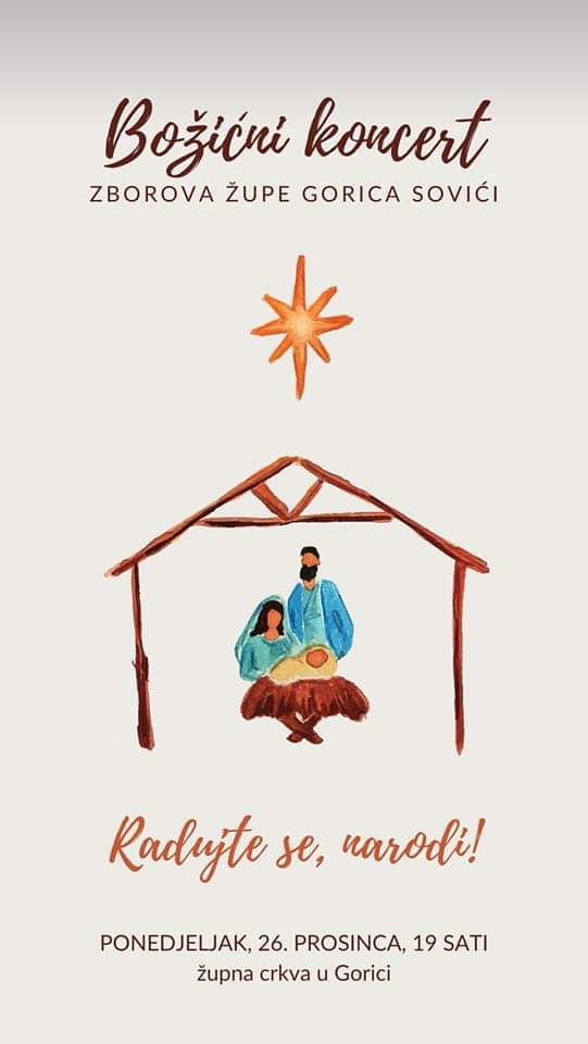 Božićni koncert zborova iz župe Gorica Sovići i klape Bratovština održat će se na svetkovinu sv. Stjepana u 19 sati u župnoj crkvi u Gorici.