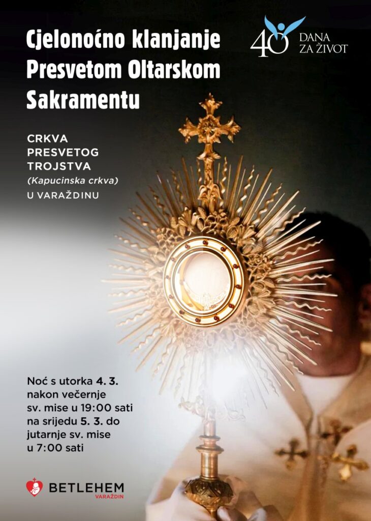 U organizaciji inicijative “40 dana za život” Varaždin i udruge “Betlehem” Varaždin organizirano je cjelonoćno euharistijsko klanjanje u crkvi Presvetoga Trojstva u Varaždinu u utorak 4. ožujka nakon mise u 19 sati do jutarnje mise u 7 sati u srijedu 5. ožujka.