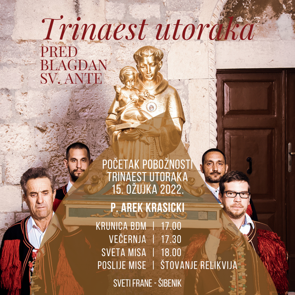 Pobožnost Trinaest utoraka uoči blagdana sv. Ante Padovanskog u crkvi sv. Frane (koje je sv. Ante sunaslovnik) u Šibeniku ove godine odvija se s temom „Simboli sv. Ante“.