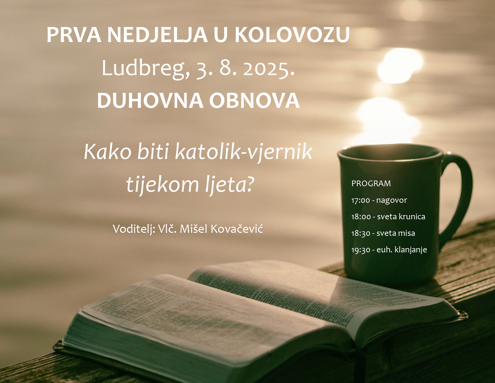 „Kako biti katolik-vjernik tijekom ljeta?“ tema je duhovne obnove prve nedjelje u mjesecu u svetištu Predragocjene Krvi Kristove u Ludbregu 3. kolovoza, koju će predvoditi tajnik varaždinskog biskupa vlč. Mišel Kovačević.