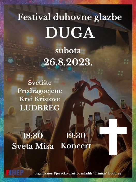 Festival “Duga 2023.” i ove godine održat će se na Svetištu Predragocjene Krvi Kristove u Ludbregu, a samom festivalu ondje će, u zavjetnoj kapeli na otvorenom, biti i slavlje mise od 18.30.
