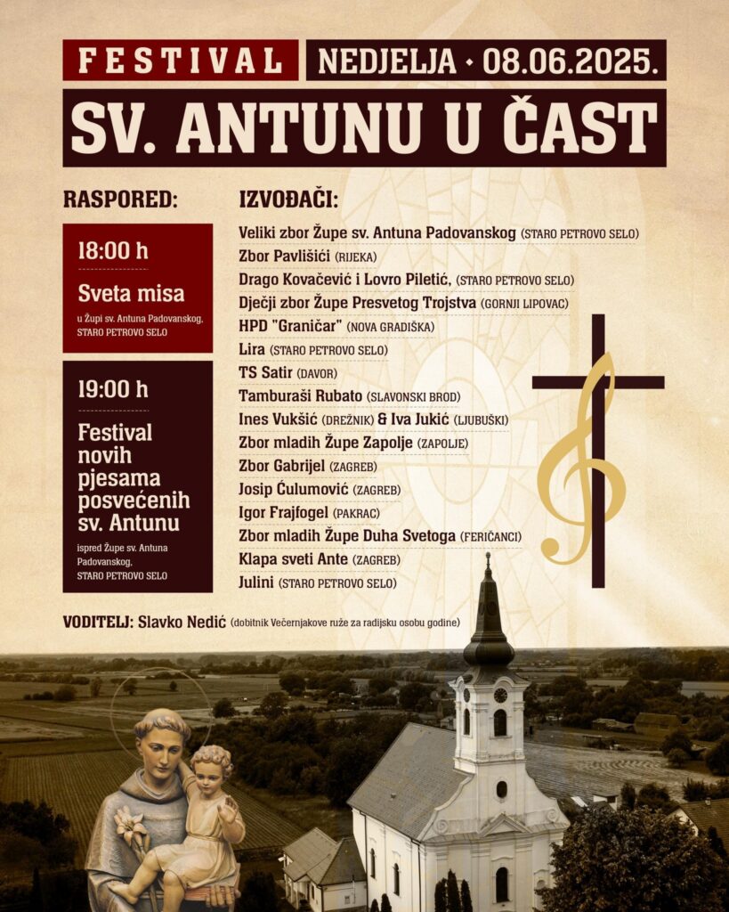 U nedjelju 8. lipnja, u Starom Petrovom Selu u Požeškoj biskupiji, održat će se po drugi puta festival „Svetom Antunu u čast“.