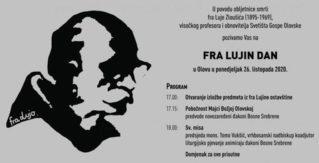 U povodu obljetnice smrti fra Luje Zloušića, visočkoga profesora i obnovitelja Svetišta Gospe Olovske, u Olovu će se 26. listopada održati „Fra Lujin dan“.
