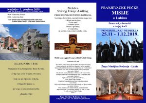 Franjevačke pučke misije održavaju se u župi Marijina Rođenja u Labinu, od 25. studenog do 1. prosinca.