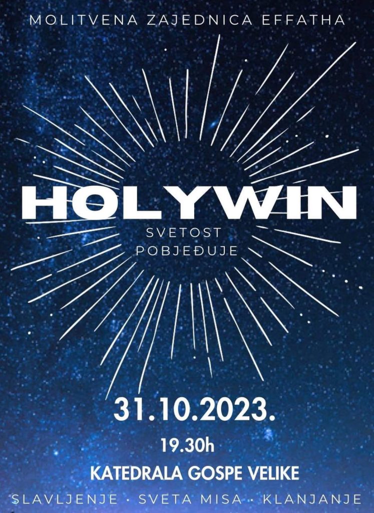 Dubrovnik, (IKA) – Otvoreni susret Molitvene zajednice Effatha u utorak 31. listopada bit će upriličen kao bdjenje uoči svetkovine Svih Svetih – Holywin. Susret počinje u 19.30 sati u dubrovačkoj katedrali, a sastojat će se od slavljenja, mise i euharistijskog klanjanja.