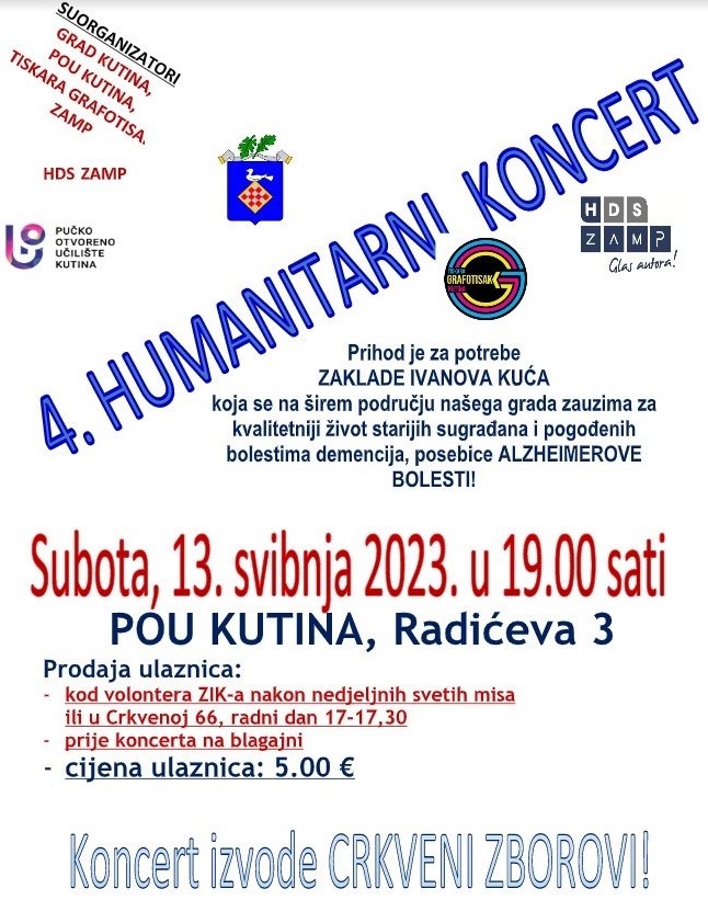 Povjerenstvo za promicanje glasa svetosti brata Ivana Bonifacija Pavletića Družbe sinova Bezgrješnog Začeća organizira 4. humanitarni koncert čiji je prihod namijenjen Zakladi „Ivanova kuća“ koja se na području grada Kutine zauzima za kvalitetniji život sugrađana pogođenih bolestima demencije, posebice Alzheimerove bolesti.
