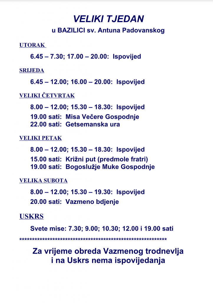 Ispovijed u bazilici sv. Antuna Padovanskoga u Velikom tjednu