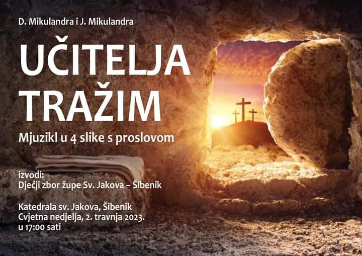 Šibenik, (IKA) – Mjuzikl u četiri slike s proslovom „Učitelja tražim“ izvest će dječji zbor Župe sv. Jakova na Cvjetnu nedjelju 2. travnja u 17 sati u katedrali Sv. Jakova u Šibeniku.