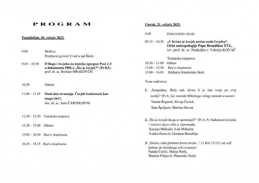Program počinje u ponedjeljak 20. veljače u 9 sati molitvom i pozdravnim govorima. Slijede predavanja i rad u skupinama.