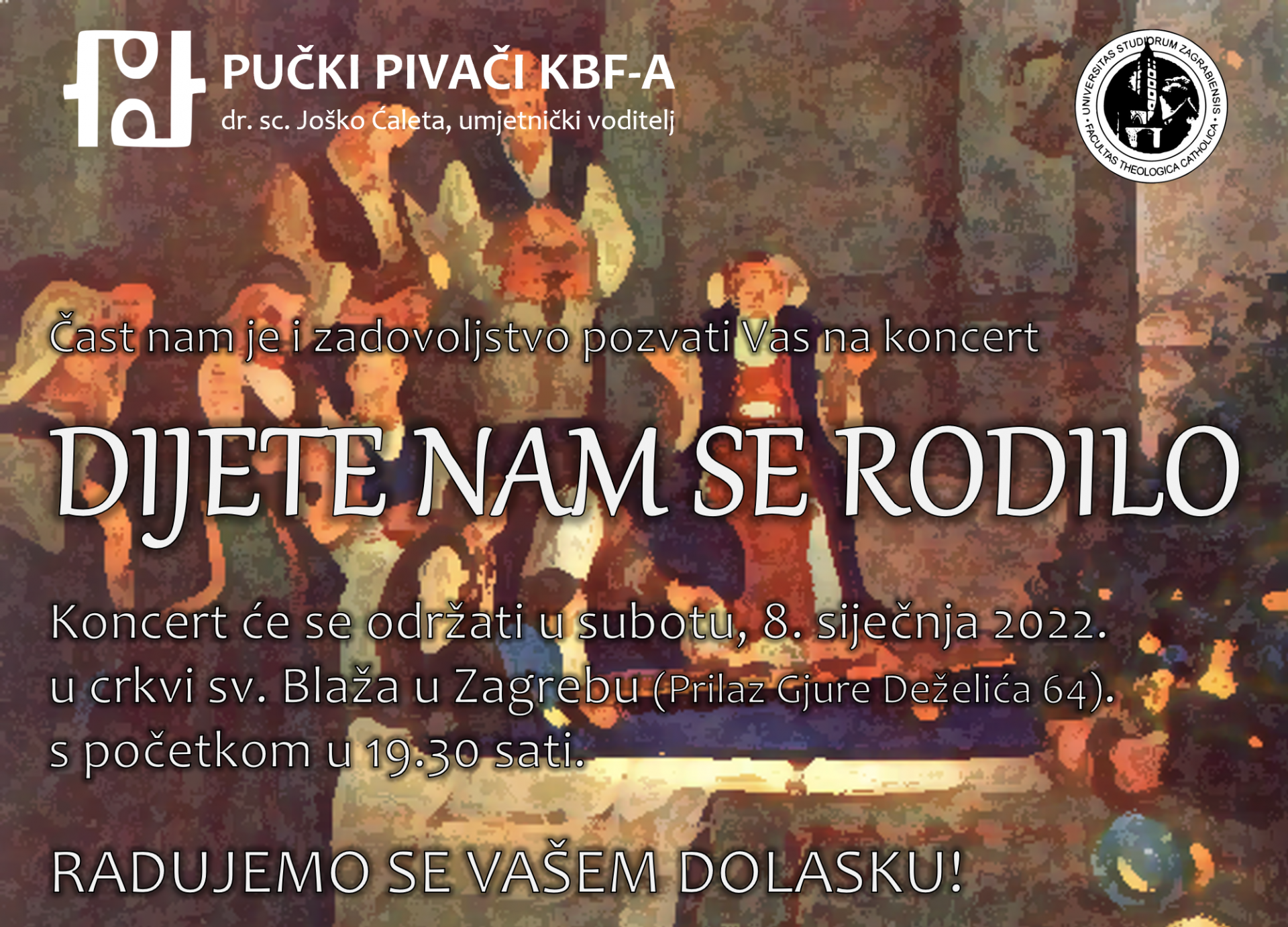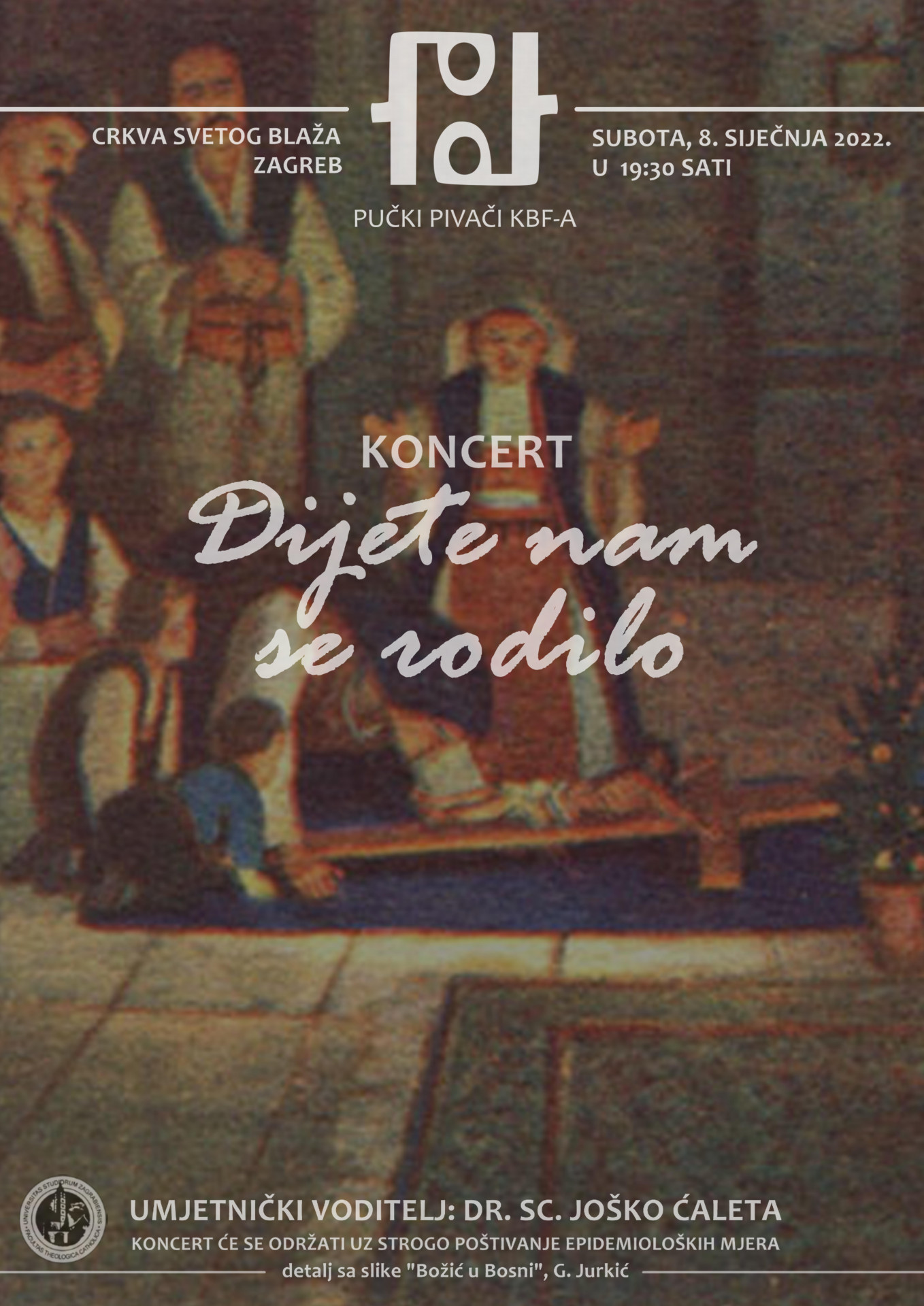 Koncert u izvedbi Pučkih pivača KBF-a pod nazivom "Dijete nam se rodilo"