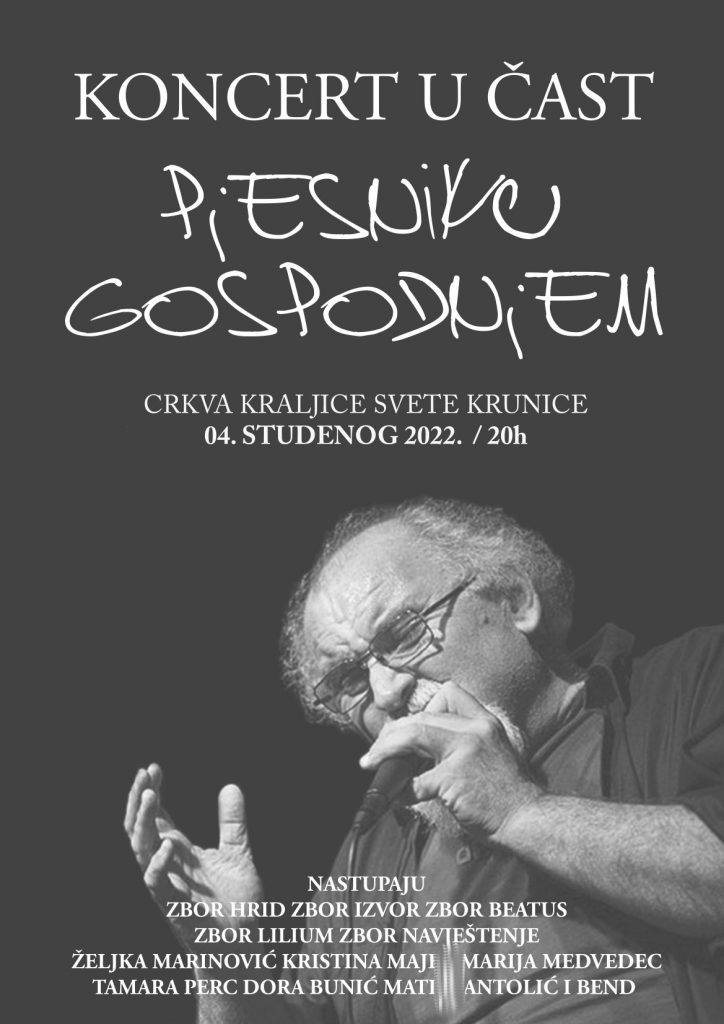 Koncert u čast Čedi Antoliću održat će se 4. studenog u crkvi Kraljice svete Krunice u Zagrebu s početkom u 20 sati.