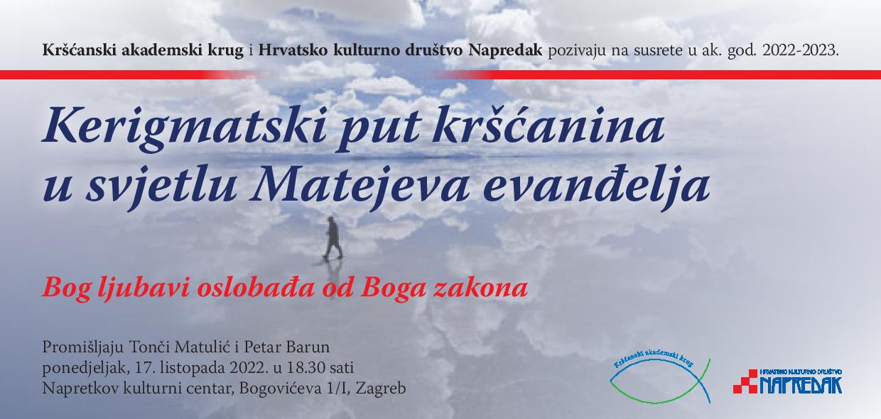 Kršćanski akademski krug poziva na prvi susret Duhovnoga doma u novoj ak. god. 2022.-2023. koji će se održati u ponedjeljak 17. listopada u 18.30 sati u dvorani Napretkovog kulturnog centra, Bogovićeva 1/I u Zagrebu.