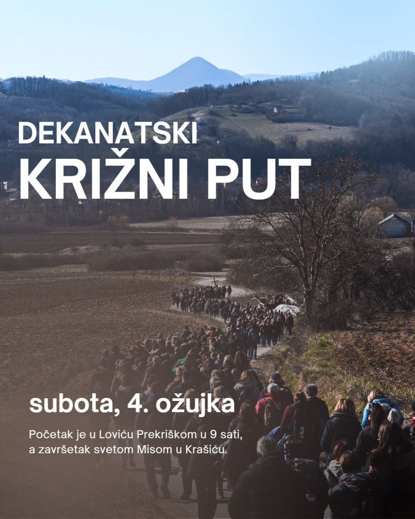 Krašić, (IKA) – Križni put Jastrebarskog dekanata održat će se u subotu 4. ožujka „Hodočasničkog stazom bl. Alojzija Stepinca“. Pobožnost počinje u 9 sati ispred crkve Uzvišenja Sveteoga Križa na Loviću Prekriškom, zatim se ide kroz Carevu Dragu do Jezerina, do rodne kuće biskupa Jurja Jezerinca. Slijedi uspinjanje do Hrženika te se spušta do Krašića do župne crkve gdje će se slaviti misa.