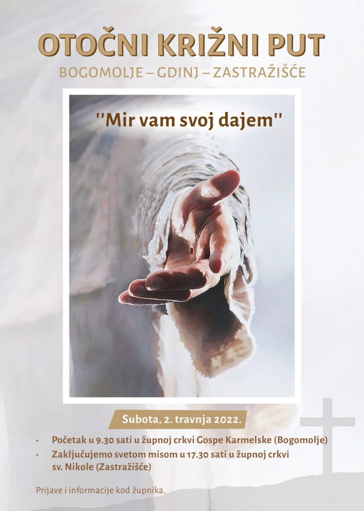 Pobožnost će početi u 9.30 sati u župnoj crkvi Gospe Karmelske u Bogomoljama. Potom se ide do župne crkve Sv. Jurja u Gdinju, gdje će biti pripremljena okrjepa, a završit će se misnim slavljem u crkvi Sv. Nikole u Zastražišćima, koje će predvoditi hvarski biskup Ranko Vidović. Postaje na tom putu bit će kod 14 crkava i kapela tih triju župa. U pobožnosti Križnog puta sudjelovat će osobe svih uzrasta. Ukupna dužina puta je oko 19 kilometara.