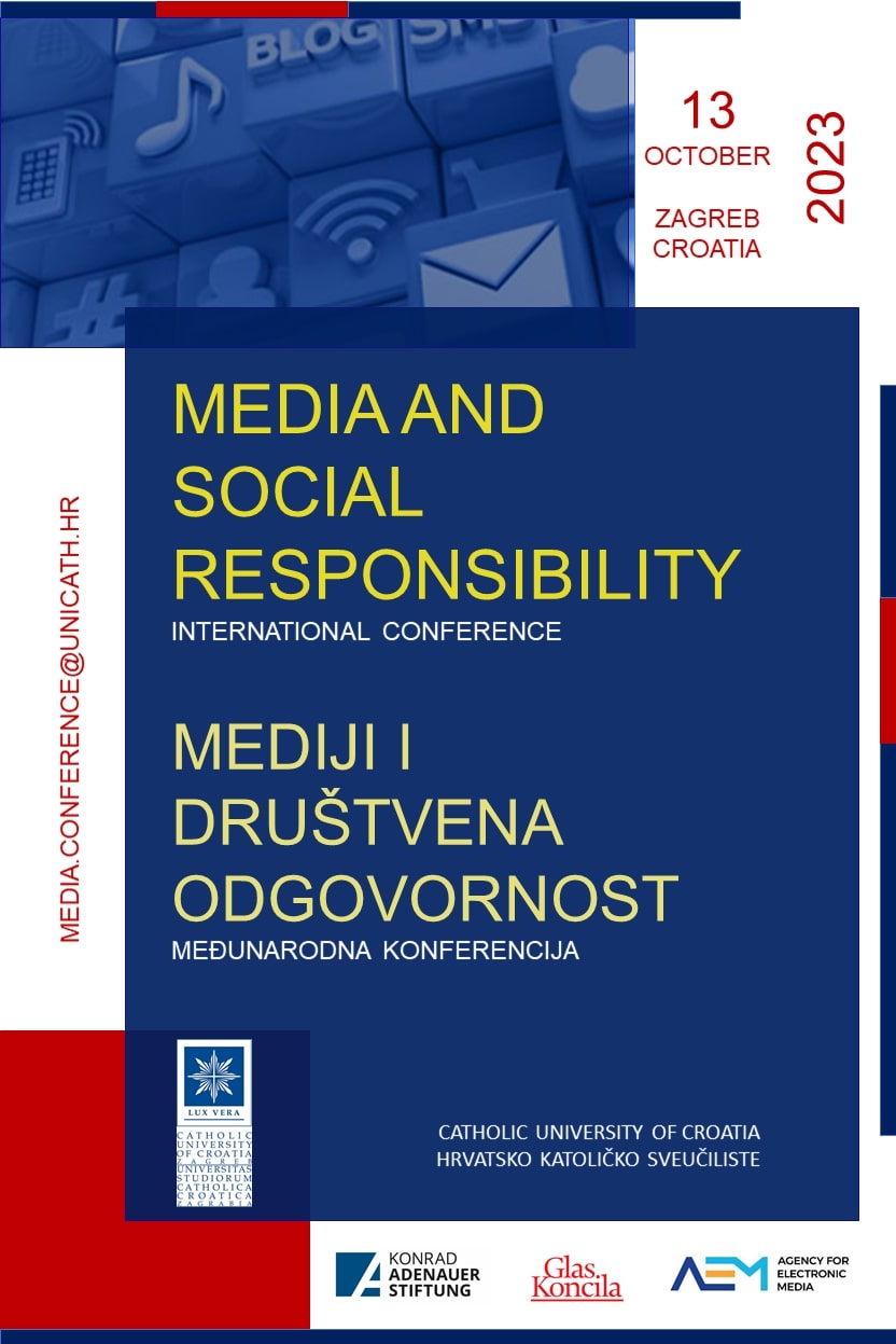 Sveučilišni odjel za komunikologiju Hrvatskog katoličkog sveučilišta organizira međunarodnu znanstvenu konferenciju „Mediji i društvena odgovornost“ koja će se održati 13. listopada 2023. u dvorani „Bl. Alojzije kard. Stepinac“ na Hrvatskom katoličkom sveučilištu.