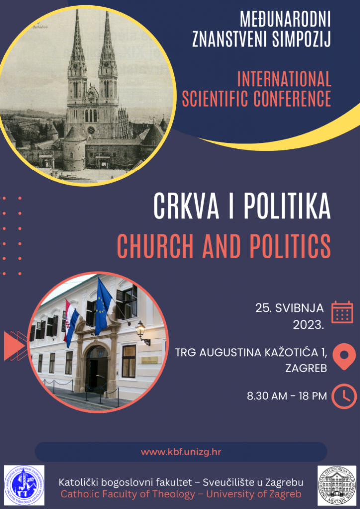 Zagreb, (IKA) – Katolički bogoslovni fakultet Sveučilišta u Zagrebu organizira međunarodni znanstveni simpozij „Crkva i politika“ koji će se održati u četvrtak 25. svibnja s početkom u 8:30 (Trg Augustina Kažotića 1, Zagreb), najavljeno je na stranici KBF-a.
