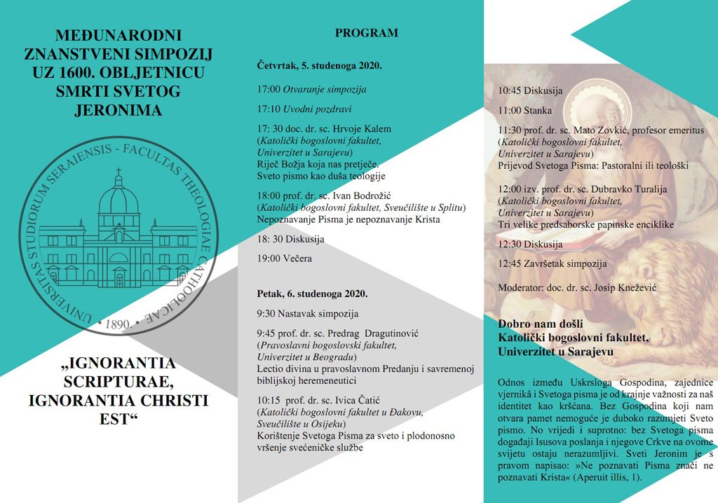 Sarajevo, (IKA/KTA) – Katolički bogoslovni fakultet u Sarajevu organizira 4. i 5. listopada dvodnevni međunarodni simpozij uz 1600. obljetnicu smrti svetog Jeronima. Na simpoziju ću sudjelovati eminentni stručnjaci iz zemlje i inozemstva.