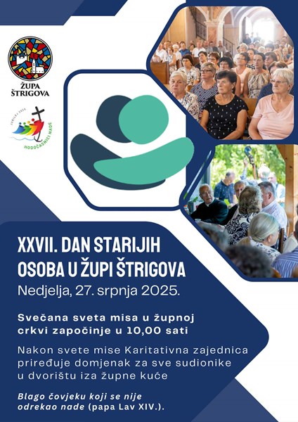 Misno slavlje povodom 5. Svjetskog dana djedova, baka i starijih osoba, ujedno i 27. župnog, u nedjelju 27. srpnja u župnoj crkvi u Štrigovi u 10 sati predslavi župnik Kristijan Kuhar.