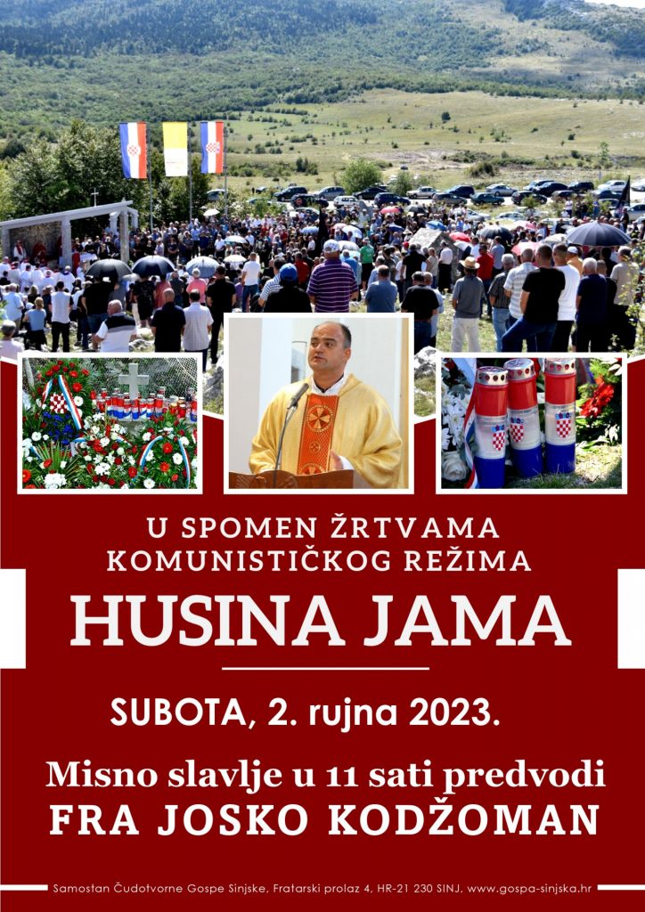 Svake prve subote u rujnu u Samostanu Gospe Sinjske u Sinju slavi se misa za žrtve komunističkog režima za vrijeme Drugoga svjetskog rata i poraća ubijene i bačene u Husinu jamu. Ove godine, na 24. obljetnicu organiziranog komemoriranja, u subotu 2. rujna u 11 sati misu će predvoditi ravnatelj Franjevačke klasične gimnazije i Sjemeništa u Sinju fra Josko Kodžoman. Organizatori komemoracije su Samostan Gospe Sinjske te narod cetinskog i livanjskog kraja.