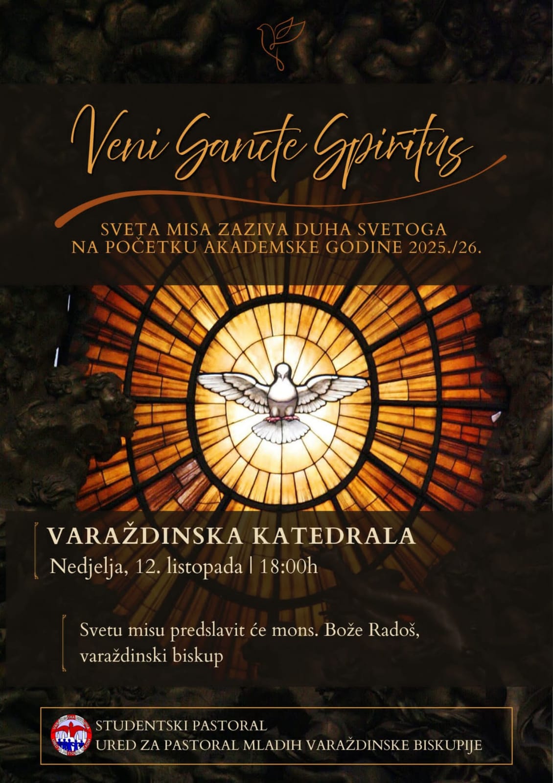 Misa zaziva Duha Svetoga u varaždinskoj katedrali Ispis Varaždin (IKA) 12.10.2025. / 18:00 Misu zaziva Duha Svetoga na početku nove akademske godine 2025./2026. u varaždinskoj će katedrali u nedjelju 12. listopada u 18 sati predslavit će varaždinski biskup Bože Radoš. Podijeli članak