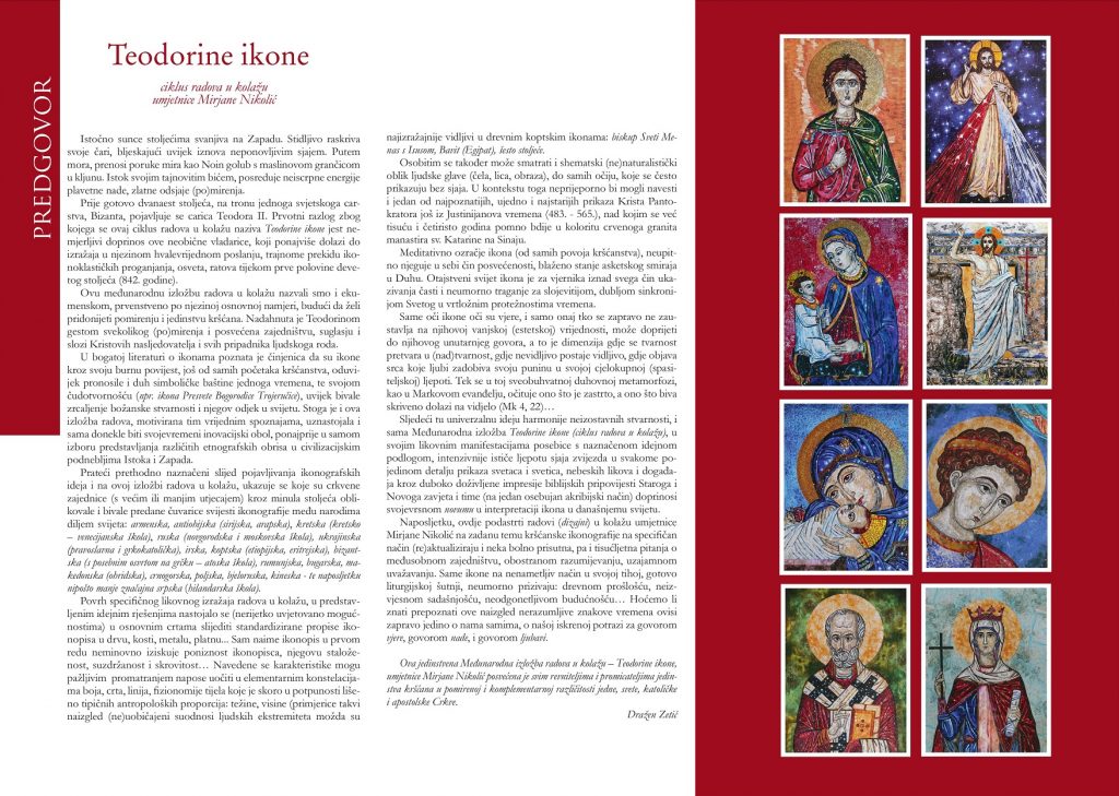 Izložbu „TEODORINE IKONE iz ciklusa radova u kolažu“, umjetnice Mirjane Nikolić iz Pančeva, otvorit će križevački vladika Milan Stipić, u srijedu 8. prosinca 2021. u prostoru Napretkovog kulturnog centra u Zagrebu, Bogovićeva 1/I s početkom u 18 sati.