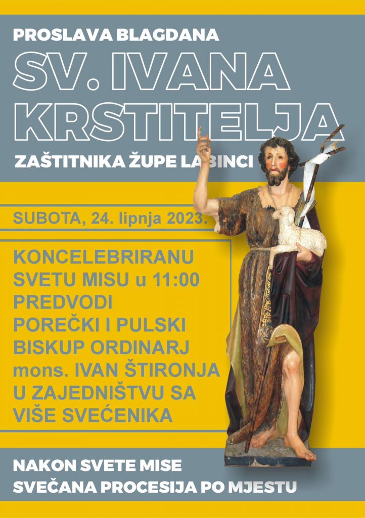 Svečano koncelebrirano misno slavlje o svetkovini sv. Ivana Krstitelja, u subotu 24. lipnja u Župi sv. Ivana Krstitelja u mjestu Labinci, u Porečkom dekanatu, predvodit će porečki i pulski biskup Ivan Štironja. Misa započinje u 11 sati.