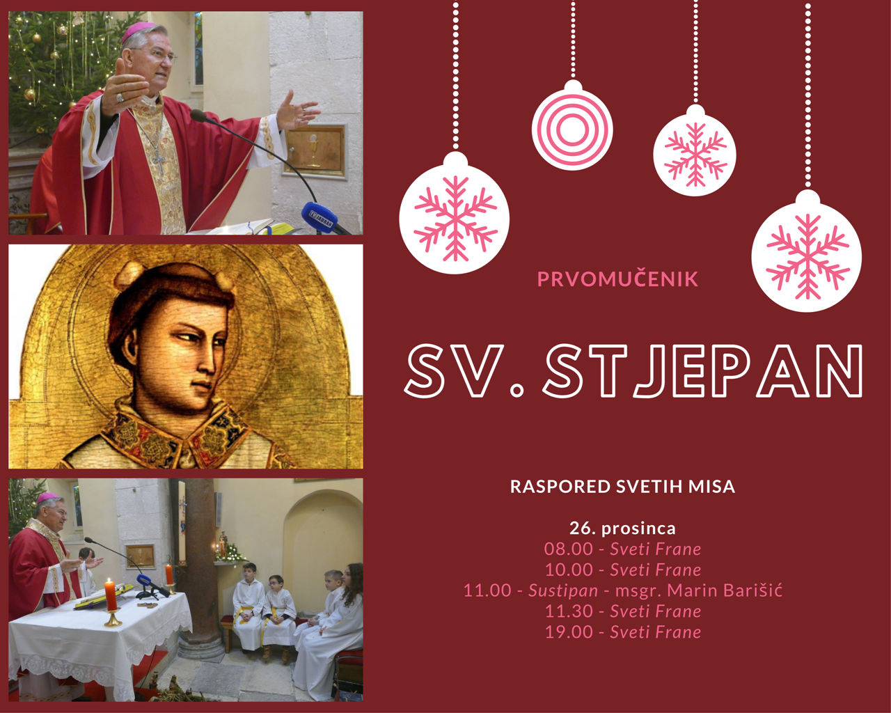 Split, (IKA) – Na župnu svetkovinu sv. Stjepana prvomučenika u subotu, 26. prosinca splitsko-makarski nadbiskup Marin Barišić predvodit će euharistijsko slavlje u 11 sati u crkvi sv. Stjepana na starom splitskom groblju Sustipan na Mejama.
