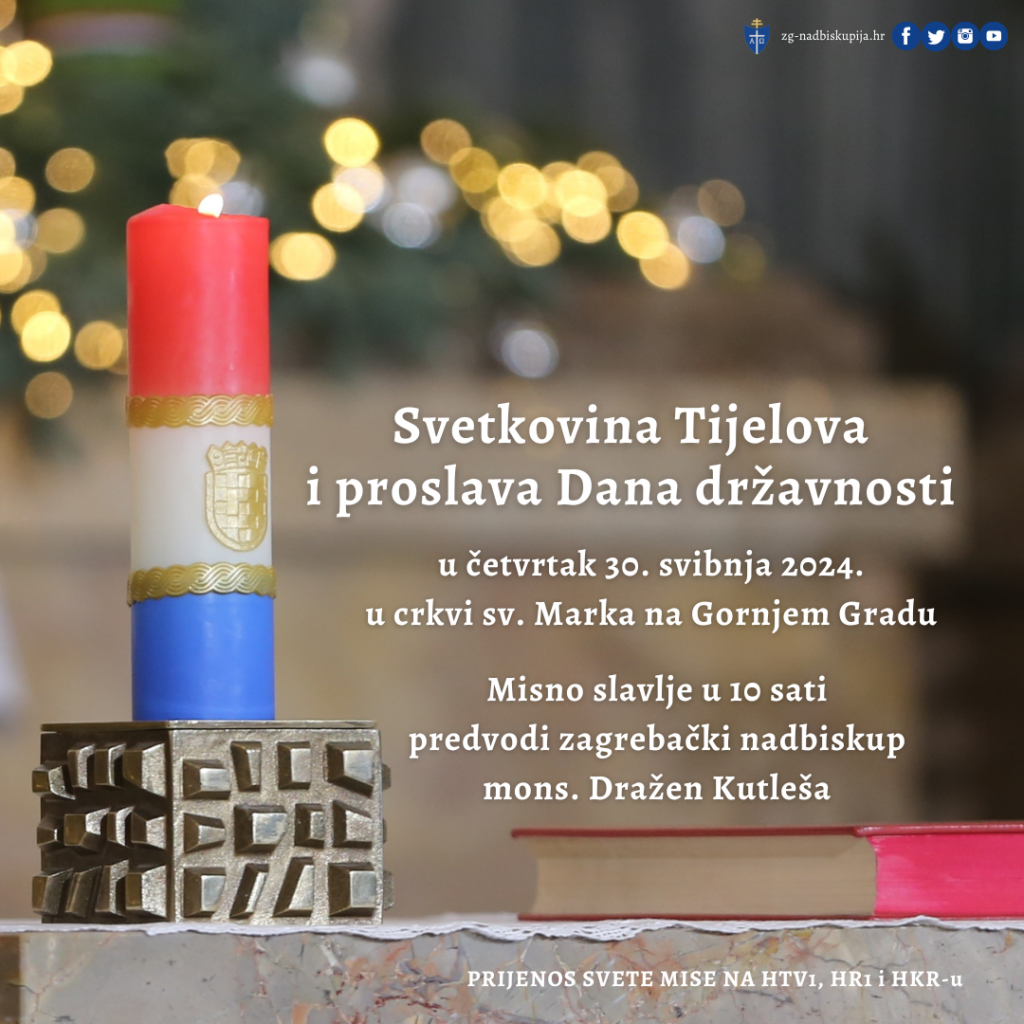 Misno slavlje na svetkovinu Tijelova i na Dan državnosti, u četvrtak 30. svibnja 2024. godine u 10 sati u crkvi sv. Marka na Gornjem Gradu u Zagrebu predvodit će zagrebački nadbiskup Dražen Kutleša.