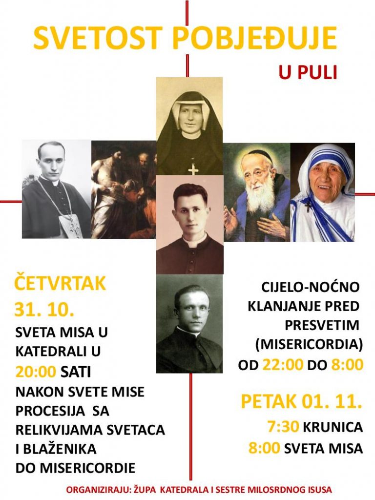 U četvrtak 31. listopada katedralna župa Uznesenja Blažene Djevice Marije i pulska Zajednica sestara Milosrdnog Isusa prvi put organiziraju misu i procesiju s relikvijama svetaca i blaženika uoči svetkovine Svih svetih pod nazivom „Svetost pobjeđuje“.