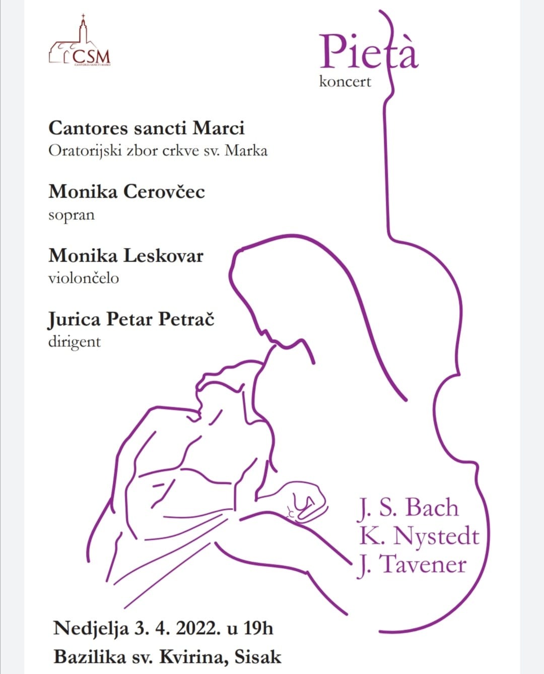 U nedjelju 3. travnja u 19 sati u sisačkoj bazilici Sv. Kvirina održat će se koncert pod nazivom “Pieta” Oratorijskog zbora “Cantores sancti Marci” iz Zagreba.