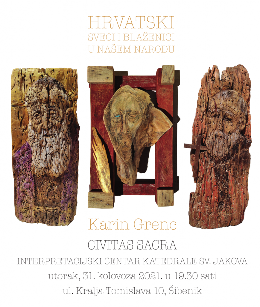 U galeriji Civitas Sacra Interpretacijskog centra katedrale svetog Jakova u Šibeniku u utorak 31. kolovoza u 19:30 bit će otvorena izložba Hrvatski sveci i blaženici u našem narodu splitske umjetnice Karin Grenc. Bit će izloženi akrili i kipovi s likovima hrvatskih svetaca i blaženika iz privatnih zbirki po svijetu.