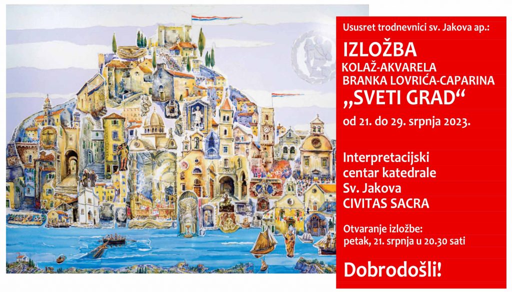 Otvorenje izložbe Sveti grad u prostoru galerije Sv. Nikola Tavelić unutar Interpretacijskog centra Civitas Sacra u Šibeniku bit će u petak 21. srpnja 2023. u 20:30.