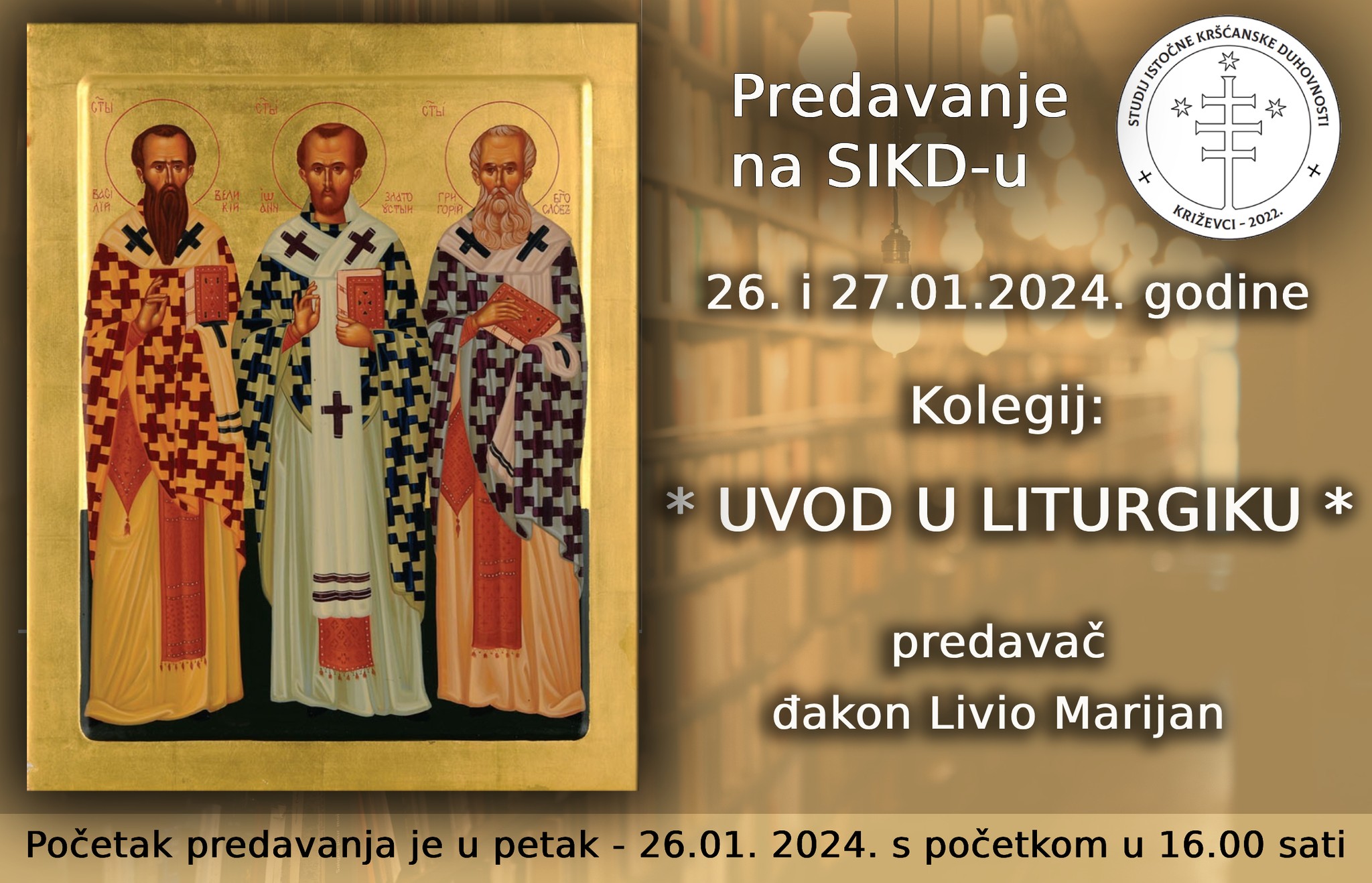 O. prof. Livio Marijan održat će u petak, 26. siječnja u 16 sati i u subotu 27. siječnja u 9:30 predavanje “Uvod u istočnu kršćansku liturgiju (I. dio)” u sklopu Studija istočne kršćanske duhovnosti u Biskupskoj rezidenciji u Križevcima (Franje Račkoga 32)