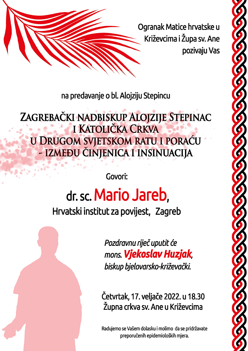 Predavanje "Zagrebački nadbiskup Alojzije Stepinac i Katolička Crkva u Drugom svjetskom ratu i poraću - između činjenica i insinuacija"