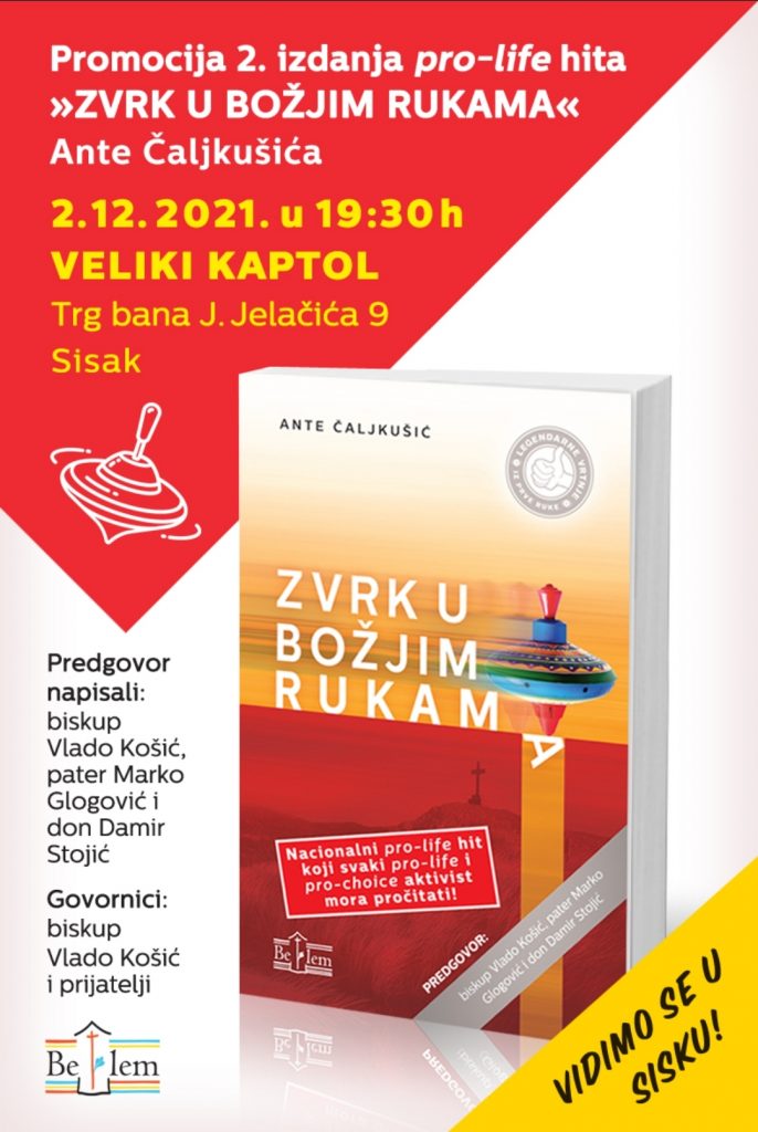 Predstavljanje drugog izdanja knjige Ante Čaljkušića „Zvrk u Božjim rukama“ održat će u četvrtak, 2. prosinca u 19:30 u Dvorani sv. Ivana Pavla II. u sisačkom Velikom Kaptolu.