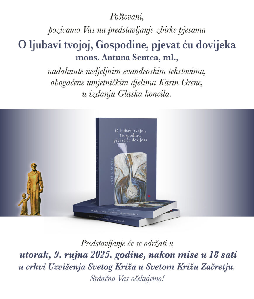 U devetnici povodom Dana župe i općine Sveti Križ Začretje, u župnoj crkvi Uzvišenja svetog Križa u Svetom Križu Začretju u utorak 9. rujna 2025. godine u 19 sati bit će održana promocija prve zbirke pjesama „O ljubavi tvojoj, Gospodine, pjevat ću dovijeka” mons. Antuna Sentea ml., nadahnuta nedjeljnim evanđeoskim tekstovima. Likovni dio knjige obogaćen je umjetničkim djelima Karin Grenc, a nakladnik je Glas Koncila.