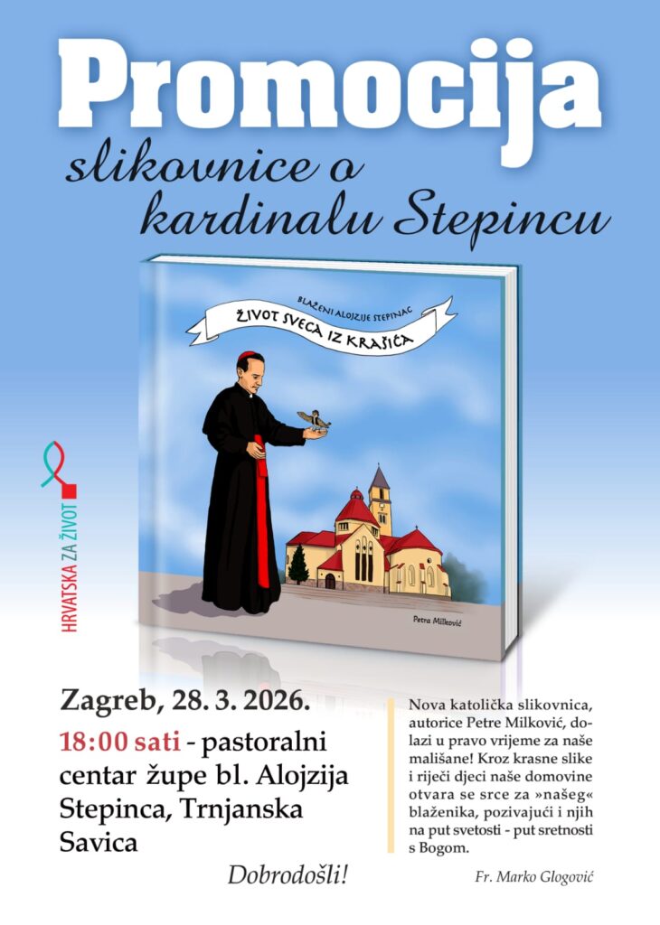 Predstavljanje slikovnice „Blaženi Alojzije Stepinac – Život sveca iz Krašića“ autorice Petre Milković održat će se u subotu, 28. ožujka, s početkom u 18 sati u pastoralnom centru Župe bl. Alojzija Stepinca u Zagrebu.