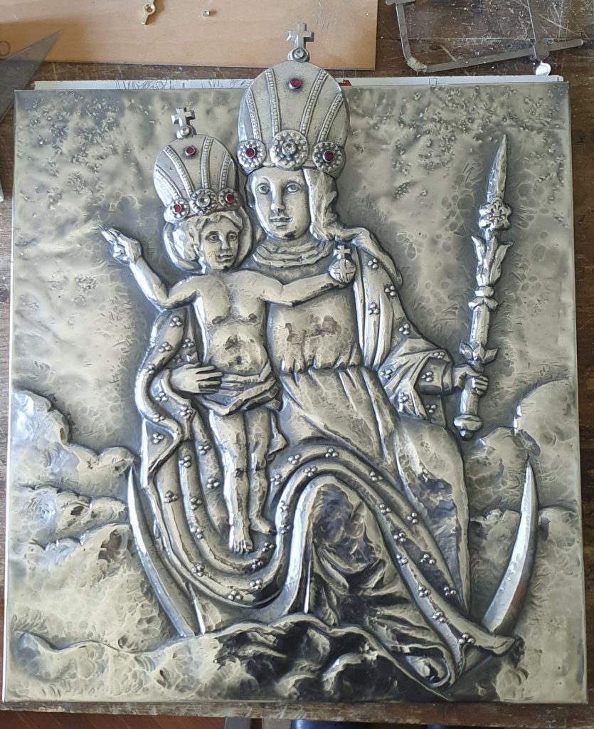 Prema projektu unutarnjeg uređenja prihvaćeno je da lik Majke Božje od Kamenitih vrata kao zaštitnice glavnog grada Zagreba bude postavljen u reljefnu skulpturalnu draperiju koja će krasiti zidove hrvatske kapele u Betlehemu. Repliku lika Majke Božje od Kamenitih vrata u srebru i poludragom kamenju izradio je prof. Hrvoje Ljubić. Srebro i poludrago kamenje dar su vjernika iz Janjeva, koji su se uz druge dobročinitelje ugradili u unutarnje uređenje kapele u Betlehemu.