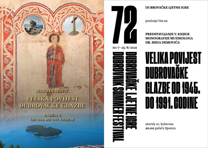 Dubrovnik, (IKA) – Dubrovačke ljetne igre organiziraju predstavljanje knjige „Velika povijest dubrovačke glazbe V.“ autora dr. Mihe Demovića koje će se održati u utorak 10. kolovoza u 20 sati u palači Sponza.