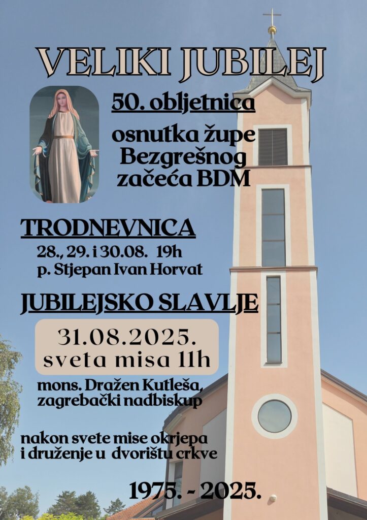 Zagrebački nadbiskup Dražen Kutleša predvodit će u nedjelju, 31. kolovoza u 11 sati svečano euharistijsko slavlje u župnoj crkvi Bezgrešnog začeća Blažene Djevice Marije u Soblincu (Zagreb), povodom proslave 50. obljetnice osnutka župe. Na svečanom misnom slavlju sudjelovat će i svi prethodni župnici, od samog osnutka župe 1975. godine.